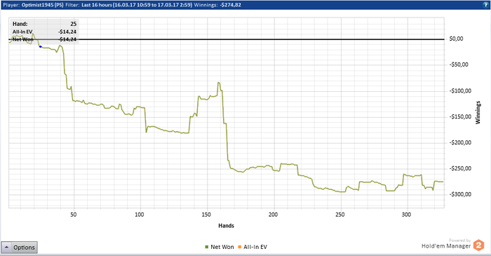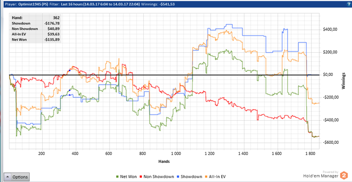 Вчера мало играл из-за тильта. А сегодня совсем играл, на расслабоне день провел. Сейчас важный момент - банкролл более менее восстановлен, за две недели сыграно 46к рук, что очень ок, поэтому лень может нанести ответный удар, почувствовав мою слабину, на фоне того, что всё хорошо.