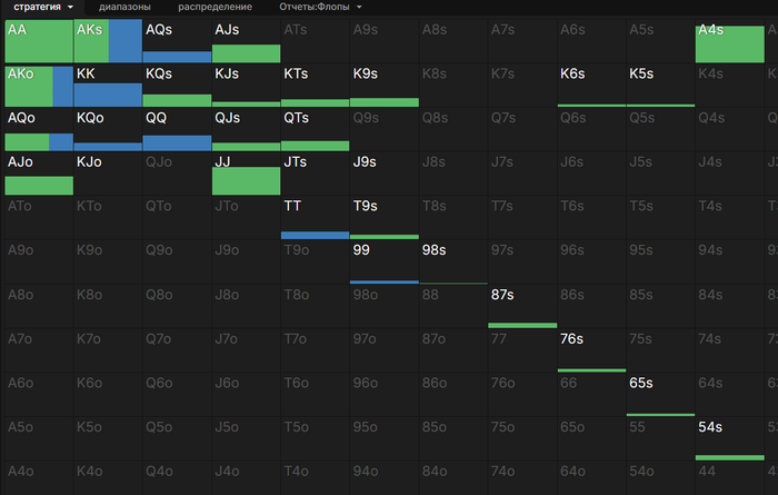 Посчитал, что у него будут почти все кармашки в опене под глубокого фиша на бб в и колле 3 бета из-за дипов. Почему-то в моменте подумал, что он все их с крестой пойдет блефовать как солвер (но у солвера их с префлопа будет кропаль).