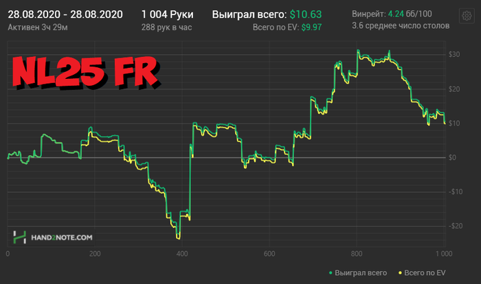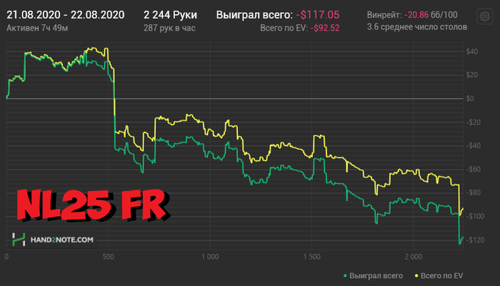 Спустя какое-то время закрыл график и перестал на него смотреть. Просто играл и старался не творить хуйни. Причем в тот день я не делал откровенной дичи. Если в последний раз я дико тильтовал и много раздаривал, то в пятницу я подарил суммарно не более одного стека. Я проиграл три крупных банка, но разобрав их, я не сыграл бы по-другому. Просто накрыла волна, когда я крайне хуево цеплялся в борды