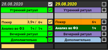 27.08.20 Сегодня я ленивая тварь. Днем слегка проебался, не уследив за временем, и сел катать очень поздно Катать 2 часа в день - недопустимо, но оставим долгую катушку на случай не самых позитивных моментов