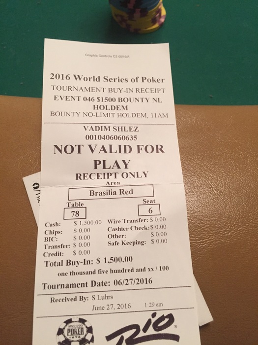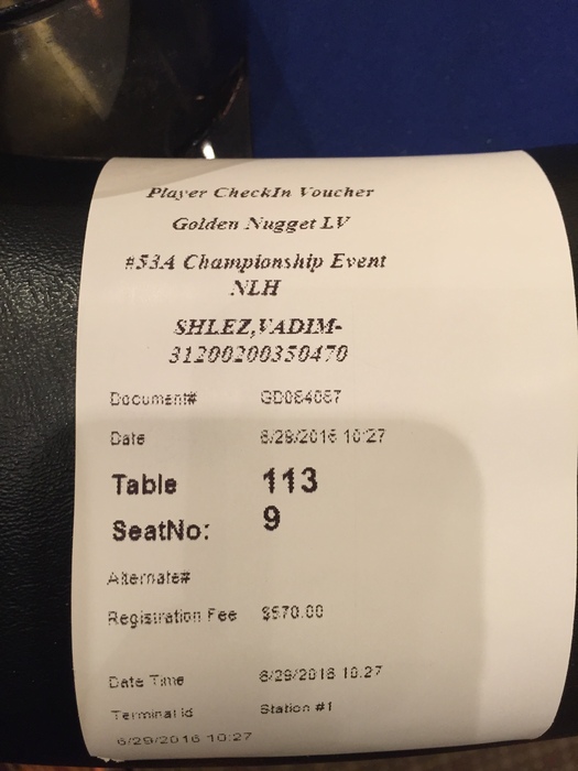 В Голден Наггет делают две необычные (для Вегасовских турниров), но достаточно логичные вещи. Во-первых, и это реально хорошо во всех смыслах, они разрешают сделать "give up", т.е. сдать стэк в конце дней 1А и 1B, чтобы иметь возможность сделать ре-энтри в следующий стартовый день с полным стэком.