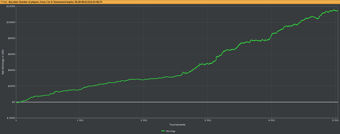 нафиг не нужен. А нужно среднее отклонение от "равномерного выпадения". И я тебе наперед скажу, что чтобы играть по своему матожиданию (ЕВ+Равнвыпадение) ты должнен отклоняться на процентов 20 в сторону "везения" от среднего расклада. Другими словами при ровной игре по ЕВ ты все равно играешь меньше ожидания, так как ты догоняющий ДП. И не дай Дисперсий отклонит чуть ниже от среднего расклада, то будет веселый минус. Например, чтобы мне сейчас получить свое ровное ожидание, нужно минимум х200 втащить. Бесполезный стат. качай swongsim и смотри как будешь в среднем стоять со своим итм.