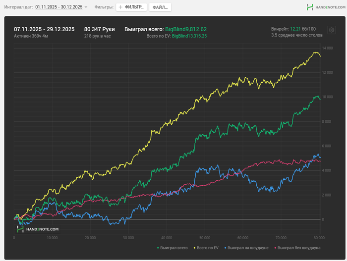После закатанных 5к в мейке я думал о том, что надо было уже уходить в кэш и пробовать играть профессионально там, а то моя карьеру была полупокерпро во время того как я работал на ТЭЦ. Но пути назад уже не было, мейк рос и с октября я достиг до отметке 12к мейка. Ну ахуенно что сказать.