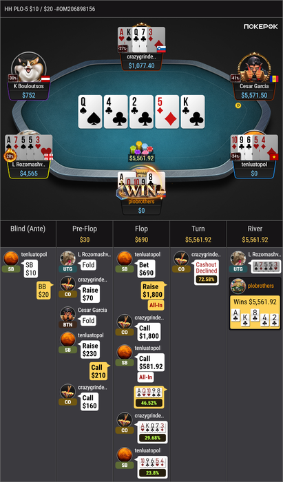 Разматываем Джоки и какого то Курву-))))) на PLO5 1000-))))