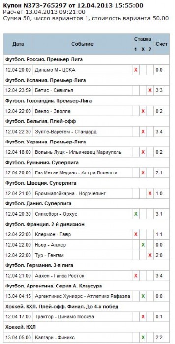 Вчера угадал в ТОТО 4 события, причем 1 ничью в хоккее!
