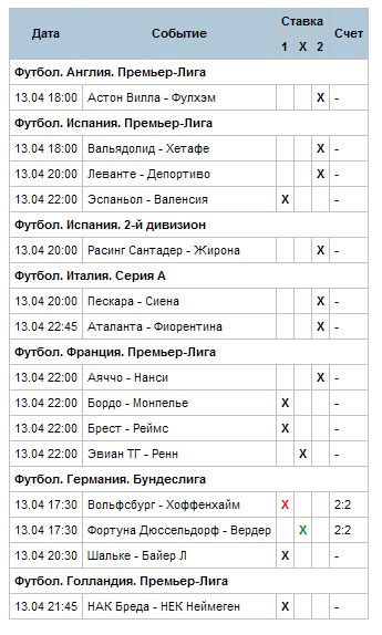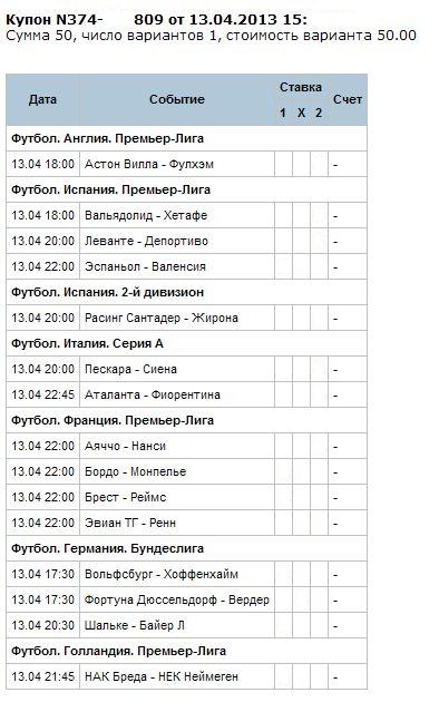 Сегодня поставил также по картам, я всегда ставлю по картам, так как считаю что если сумма ставки 50 рублей и хочешь выиграть за 12 событий больше 10 кусков, то нужно ставить наугад!