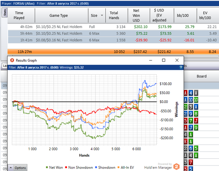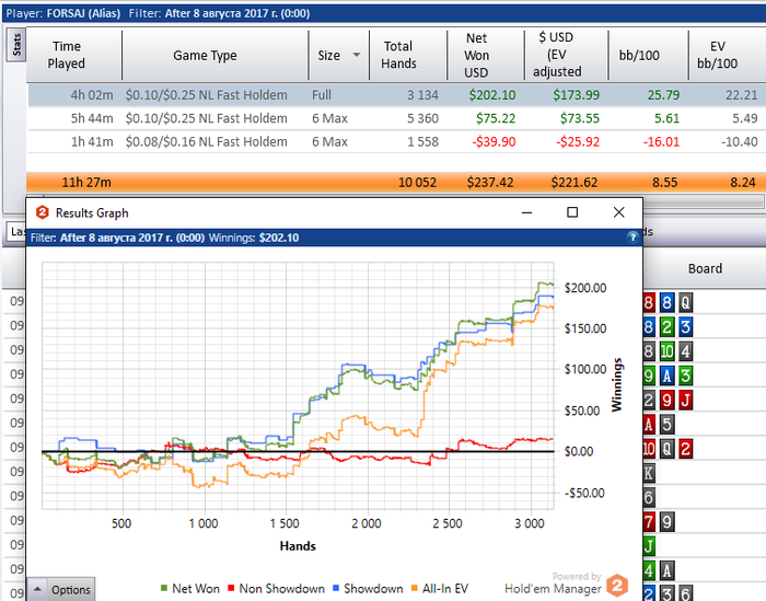Невасёк, Если нужен совет, то закрой нл10, сам за собой уследил, как только открываю нл25 с нл10 результаты и качество игры неумолимо падают. Хотя может я ошибаюсь, но теперь только 4 стола играю.