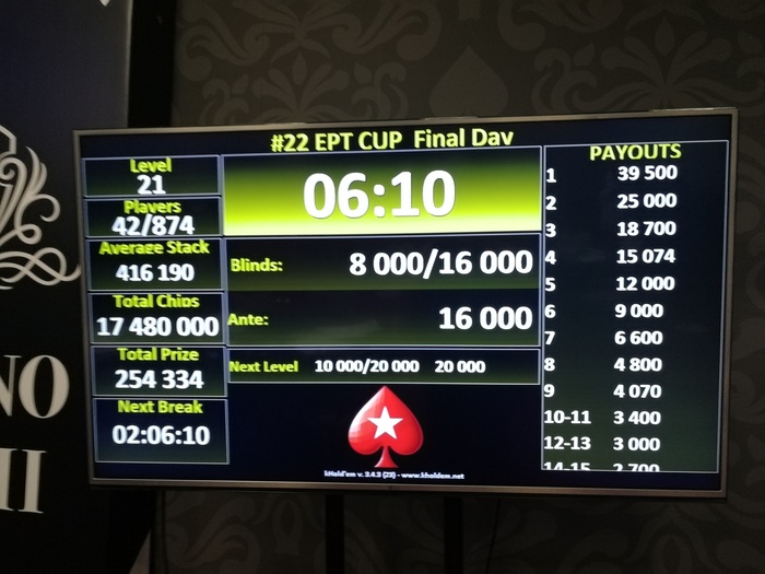 Так что норм я ворвался в офлайн мтт) Первый живой турнир играю, голова конечно пухнет считать эти блайнды, сколько у тебя бб, сколько у других, но вроде немного освоился под конец. Завтра будет продолжение.