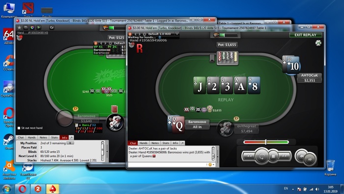 (2 игроков, 1 all-in)Общий банк: t10,390