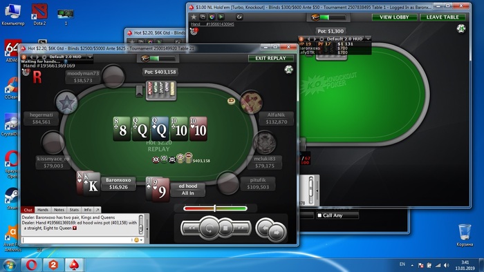 (2 игроков, 2 all-in)Общий банк: t3,679