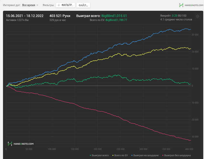 В том то и дело, что конечно можно пытаться откатать большее колитчество рук за меньшее количество времени дабы быстрее "отыграть диспу". Вот только катая в таком ране психика может сказать тебе пока, да и куча проблем вылезет. Это ведь просто ад в течении года иметь недобор и постоянно жевать гавницо. Я все понимаю, но спины по своей структуре это совсем другое. Поверь разница огромная проиграть на старте спина с тузами королям или проиграть тоже самое по 200 или того хуже 300бб. А в остальном все зависит от конкретного человека. Ты молодец в целом если смог спокойно в стрике выкатывать 8к спинов в месяц, можно сказать у тебя есть проф. ориентация как покерного игрока, но в большинстве очень большой % игроков конечно будут иметь проблемы с дистанцией просто потому что не вывезут чисто морально и дело либо затянется либо того хуже