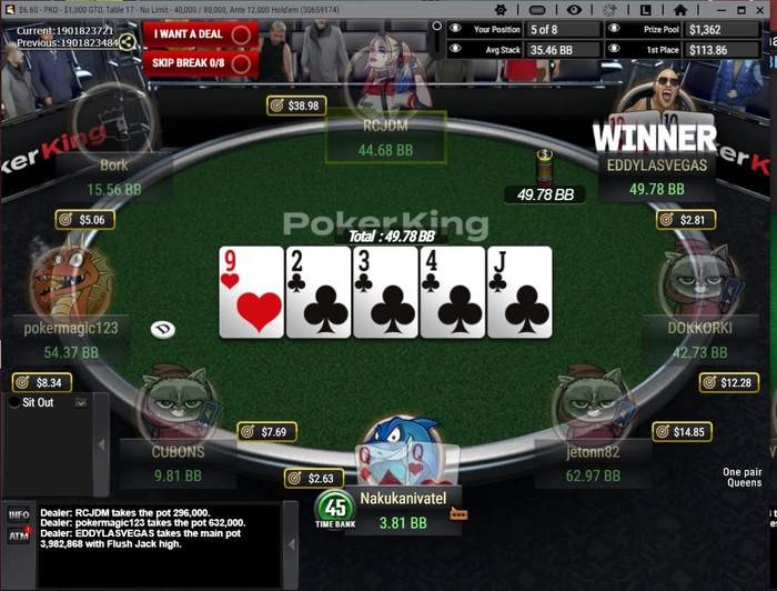 Сегодня сессия не складывалась попадал в итм самый низ загрузки, но то 15ый вылечу ,то 20ый. верха мимо . в турнире на кинге где 220 участников было попал за финалку . зашли дамы офигенно выставился против 1010 и оппонент собрал флеш оставив мне 3бб. Я так расстроился,что чуть не выиграл этот турнир,в топ 3 был первый по стеку, но считаю что сыграл очень плохо и отдал часть своего профита. в итоге так.