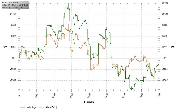 Поэтому, с начала октября я буду какое-то время играть нл200 в доле со своим партнером (да, мы теперь партнеры) Форхалеем. Главная задача - избегать таких замазочных игр и вообще избегать длинных сессий с жестким мультитейблингом. Надеюсь, что моя совесть будет каждый раз мне напоминать при первых признаках схода крыши, что четверть стека не моя.