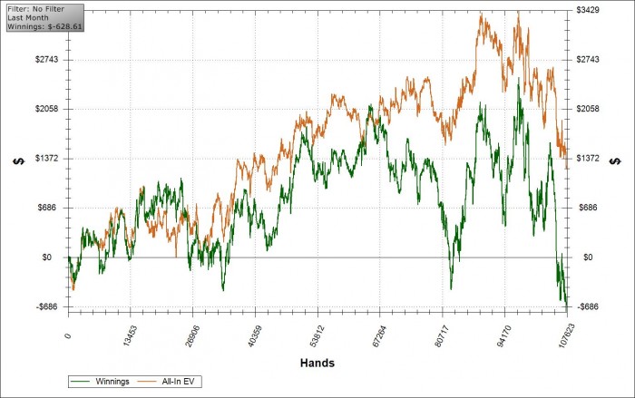 Из плюсового месяц превратился минусовым, сраная ев линия все выше и выше. За последние 3 месяца у меня этого ев столько, что можно идти на рынок торговать. Точную цифру унес с стобой покойный жесткий диск старого ноута, но думаю цифра в районе 8к. Неплохая была бы прибавка к банкроллу. Была бы.