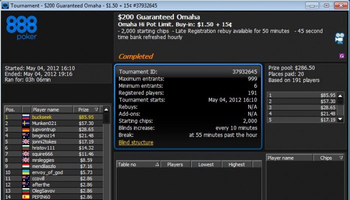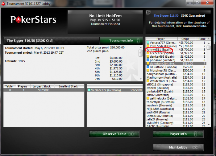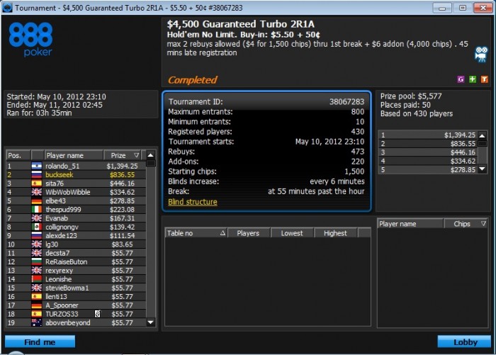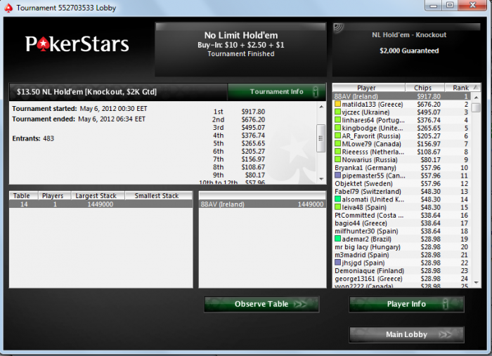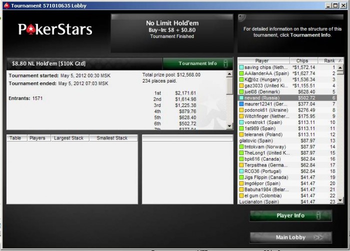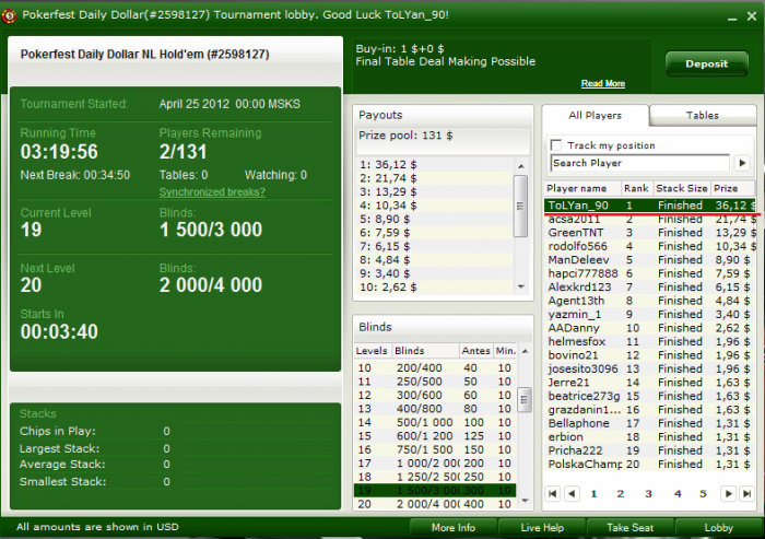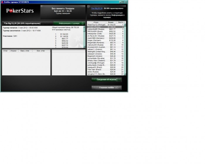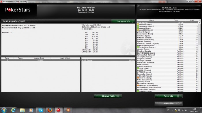 Наконец то хоть что то получилось на Покерфесте. Но опять ***** не первое. ХА за 1400$ с равными стеками и через некоторое время < префлоп на все фишки. Глупость какая то что на пати не предусмотрена делёжка в ребайниках