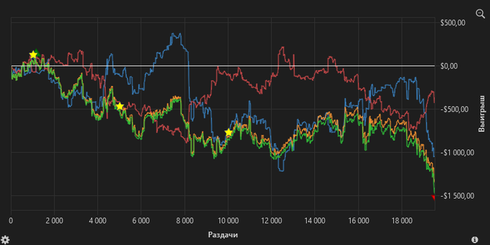 чтобы примерно описать ситуацию, 3 раздачи против агровипа с впипом примерно 100/70, сыграные в течение 10 минут