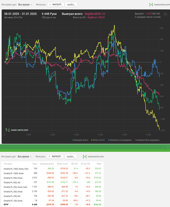 По времени вышло так: 53 часа катки и 73 часа теории. Первый месяц за очень долгое время (если вообще такое было когда-либо), когда теория так сильно опережает катку. Ну и времена поменялись, поэтому в целом, такой объем работы я уже оцениваю на твердую 4. Хочется конечно стремиться хотя бы к 140 часам, но пока это маловероятно. Ну и как можно заметить примерно половину катки я продолжал катать холдем в одной приложухе, там что-то нажил но меньше чем хотелось бы, как всегда шотнул лимит выше и залил половину профита. Хз, возможно было бы плюсовее сейчас эти 20 часов тоже накинуть в обучение и сосредоточится на чем-то одном, что бы ускорить переход, подумаю еще в следующем месяце как лучше.