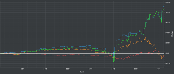 BB: $13.67 - VPIP: 21, PFR: 9, 3B: 2, AF: 2.4, Hands: 224