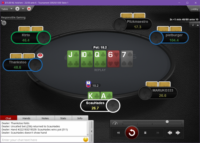 Ну а сегодня день 13ый, а я играю отвратительно не успеваю нажимать кнопки, много мискликов миссридов, не замечаю коротких, не понимание частое как я попал на пост флоп и сколько человек в банке, как итог я просто сгорел закончил первую сессию на пол часа раньше и да я разбил эти 12 часов на 3 сессии по 4 часа, вот после того как ожили старзы я запустился на 2ую сессию, на первых минутах это чувство что я не хочу играть в покер меня с него тошнит, и я на втором мониторе запустил стрим под катку, как итоге так и не получилось сконцентрироваться на катке, опять те же проблемы что и в первой, вырубил стрим попытался вернуться в игру всё-таки не получилось я продолжал не правильно читать ситуации и не замечать коротких, как итог я сгорел 2ой раз за день из 2ух, и решил экстренно стопать регу. Самое странное что это при этом я в обоих сесииях даже плюсануть умудрился.
