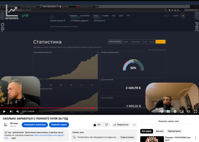 StratoLifter, Я могу оперировать только собственной статистикой. Есть сайт trader make money (тот же самый SharkScope в покере). Туда вбиваются все API ключи, с которых ты торгуешь. Соответственно скрыть сделки и подделать статистику невозможно (это даже написано на главной странице сайта). Этот профиль публичный, соответственно каждый может на него зайти https://tradermake.money/ru/trader/GMbQPb