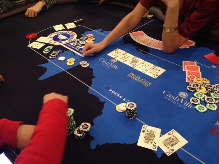 МР-казах справа очередной Лимп ,я с КО с изолирую его 1500,Бат кол,ББ кол...Флоп три чека,я с-бет 1400,молодой казах-интернетчик на ББ рейз 3500,я ререйз 5500,он пуш 19К,я кол...У молодого ...Терн и ривер бланк...Стало ~50
