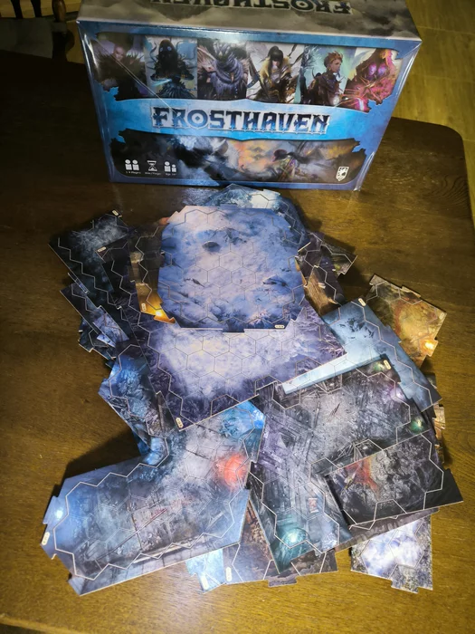 Герои очень радовали, особенно первое время, но вопрос про Глум оставался открытым. Пока однажды мы не увидилеи большую скидку на лазаде на Фростхэвен — второе издание Глумхэвена, доработанное и улучшенное, новая история, новые персонажи. Вопрос оказался решен сам собой, я в очередной раз повторил про “тэйк май мани”, и мы заказали…