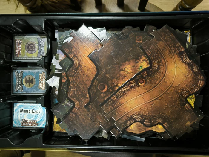 Последняя настолка, которую хочется упомянуть. Уже не помню когда именно мы ее купили, но точно до Глумхэвена. Игра называется — Shadows of Brimstone. Задумка тоже очень прикольная: времена дикого запада, подземелья, сокровища, инопланетные монстры, и самое ценное в этом мире — "дарк стоун", камень, вызывающий мутации. Например, у тебя может вырасти хвост, или 3я рука, что дает как плюсы, так и минусы.