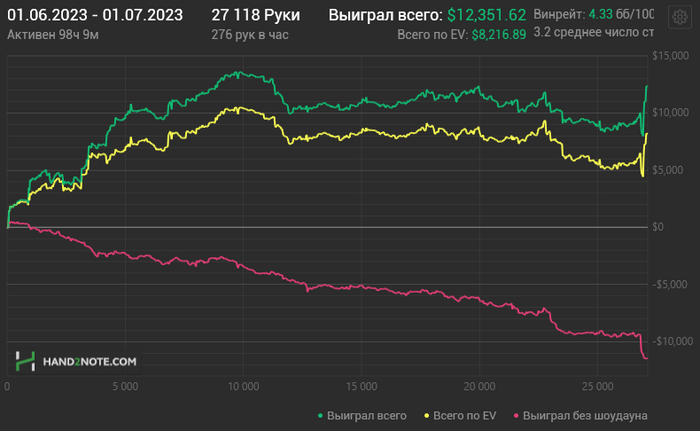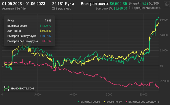 А ещё на этой неделе был забавный случай: мой неудачный тренерский опыт - ученик с нл25, который не побил тогда полтинник (25 - 8,9 бб , 50 - -2бб на сотни рук дистанции), написал.
