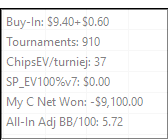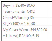 казалось бы, более менее чипев, но это чипев в ночных составах с 2 фишами. Вообще 1-ая сессия как я перестал смотреть резалты была 320 турниров в -7 чипев, если бы не 2-ая сессия, я бы не отмазал это, хорошо что я не видел что было в 1-ую сессию... Щас сделаю перерыв 2 часа, закажу себе суши, выпью кофе и буду дальше катать, потому что сегодня откатал только 275, это мало. Перерыв нужен чтобы отойти от того что под конец раздали, там за 15 туров -5 или -6к по ев улетело, просто нереальная жесть была. Общая дистанция марафона