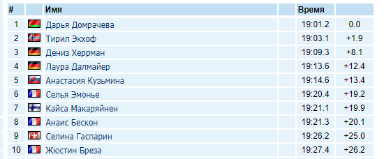 В первую очередь хочется поздравить с хорошим выступлением Катю Юрлову. У нас это первые «цветы» в сезоне — шестое место с отличной, стопроцентной стрельбой. Конечно, Катя сегодня молодец. Другие позитивные моменты — сегодня мы ходом проиграли меньше обычного. Дарья уложилась в 40 секунд, Татьяна — в минуту. Раньше такого не было. Сейчас мы в этом компоненте сильно добавили. Я думаю, что в совокупности за счет хороших лыж и более-менее хорошего состояния. Но опять же не справились со стрельбой. У Даши четыре круга, это ее крайности — на лежке очень быстрая стрельба, на стойке наоборот очень медленная. Это нарушение ритма не позволило ей стрелять качественно. Хотя она готова функционально, способна стрелять ноль. Что касается Ирины Услугиной, то она показала свою скорость по дистанции, но не справилась с лежкой. Но при этом собралась, отработала великолепно на стойке.