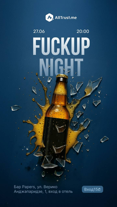 🔹Ещё увидела анонс мероприятия - стендап, где разного рода бизнесмены и предприниматели рассказывали о своих бизнес-провалах. Организовывал эту движуху криптообменник, которым я обычно пользуюсь. Мне показалось это мероприятие интересным и как раз нечем было заняться в пятницу вечером, так что я принарядилась, накрасилась и пошла социализироваться и слушать интересных людей.