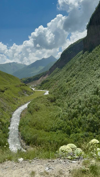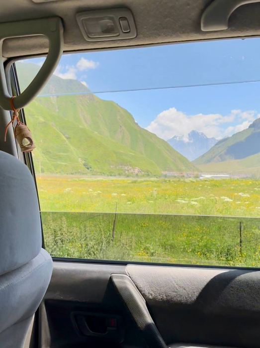 Дорога туда прошла легко, от Тбилиси до долины ехать около 3 часов, последние полчаса по жуткому бездорожью. Меня швыряло на заднем сидении только в путь, благо Драмину бахнула перед поездкой 😅