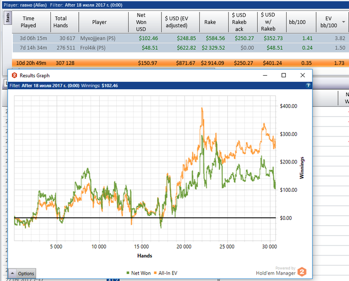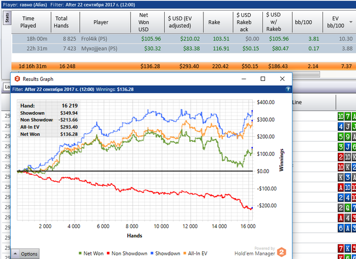 За одну сессию угодил с натсовым фуллом на тузах в каре с удвоенными стэками, три раза воткнулся с КК в АА (в двух случаях отдал стэк, в третьем только полстэка). Что делать? Да ничего ты не сделаешь, тупо без вариантов. Уверен, что ГСЧ работает на фишей и против гавнорегов (типа меня), с этим ничего не поделаешь. Вроде хороший вариант - уйти играть и ждать переключение рубильника на НЛ2, но и на НЛ2 могут иметь каждую руку: правда, потери небольшие.