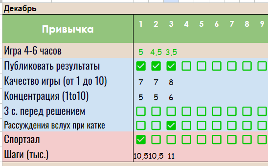 Немного переделывается таблица, теперь она больше похожа на учет таблеток для деда, чтобы он не забыл принимать, и это я еще количество воды хочу вместо концентрации добавить (я уже понял, что мне, с учетом ночной катки, ее просто не достичь), так что лучше с качеством игры объедены будут в одну.