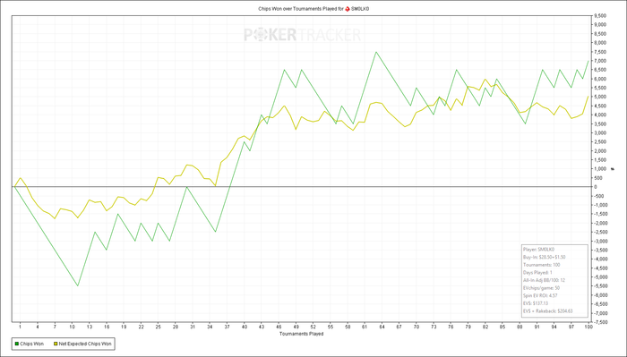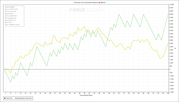 У меня есть теория, что когда у тебя стрик по фактическим фишкам, то у тебя стрик и по ЕВ фишкам, потому что ты реже выходишь в ХА, где выигрывается больше ЕВ фишек, чем в 3 максе.