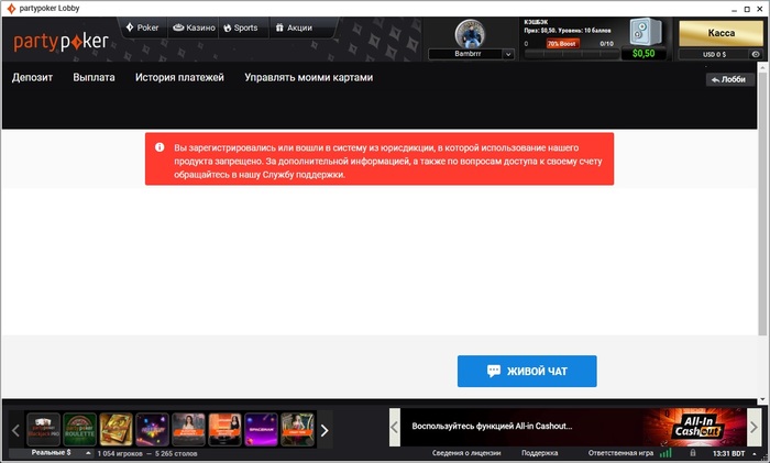 Первым делом мы можем порекомендовать обратиться в службу поддержки partypoker и запросить у них подробности по данной ситуации.