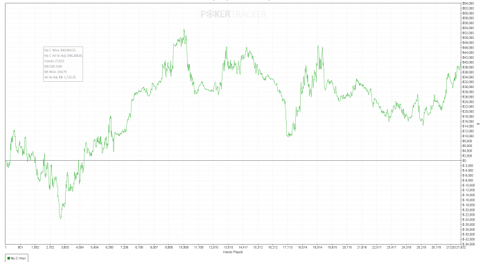 Такой фэйл с винрейтом из-за того что я умудрился проиграть больше тридцати (!) бай-инов за три тысячи рук (!) на пло400 В основном агрофишу на трех столах. Такого пертого засранца в жизни не видел. Не повезло , что его втсретил, а с другой стороны повезло, что не встретил такого где-нить на 1к =) Через минут 10 как я всё-таки ушел видел его на 5к, где он бодренько залил весь свой бр рук за 200
