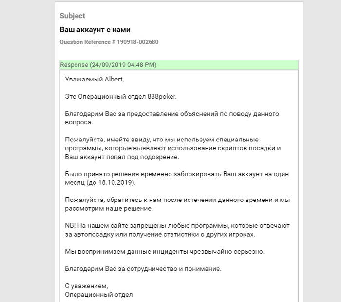 Написал в саппорт, не хотят ли они вернуть деньги в разыгрываемых потах, которые я потерял по их вине - они то ли не врубились, то ли сделали вид, что не врубились. Ответили совсем не по теме: