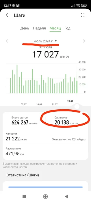 Добрый день, а можно как то на айфоне или эпле вотче посмотреть общую статую за месяц , а то я устал считать по дням)