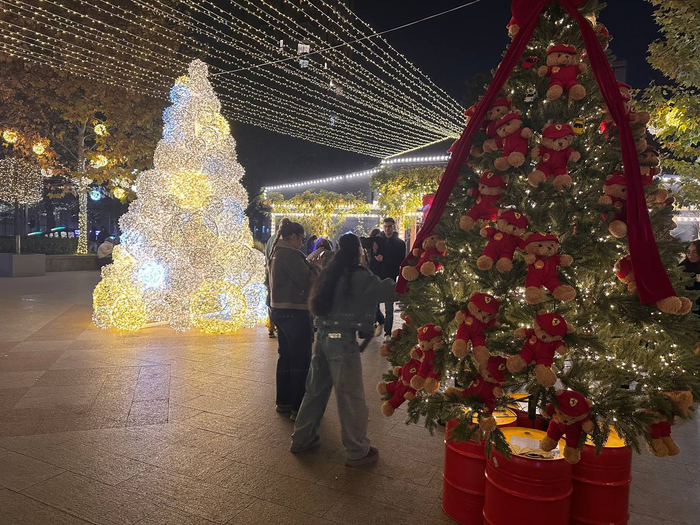 Ещё здесь всё уже украшено к Новому году, в отличие от Тбилиси. Здесь уже работают рождественские ярмарки и даже открытый каток. Интересно, работает ли он в дождь? Сейчас как раз пошёл.