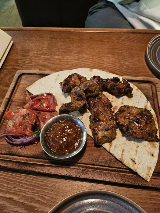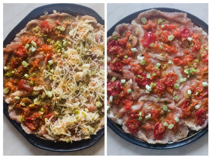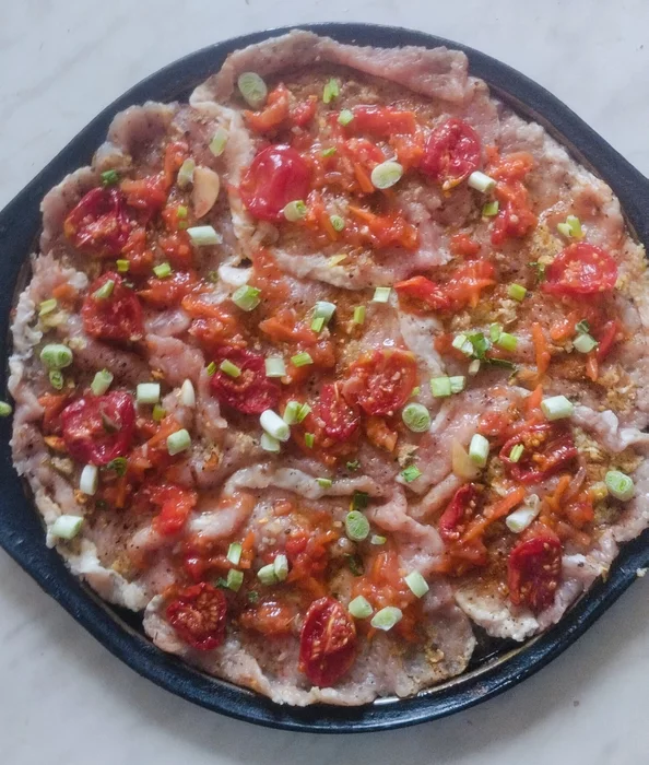 Свинина, вяленые помидоры, аджика, специи, чеснок, местами сыр