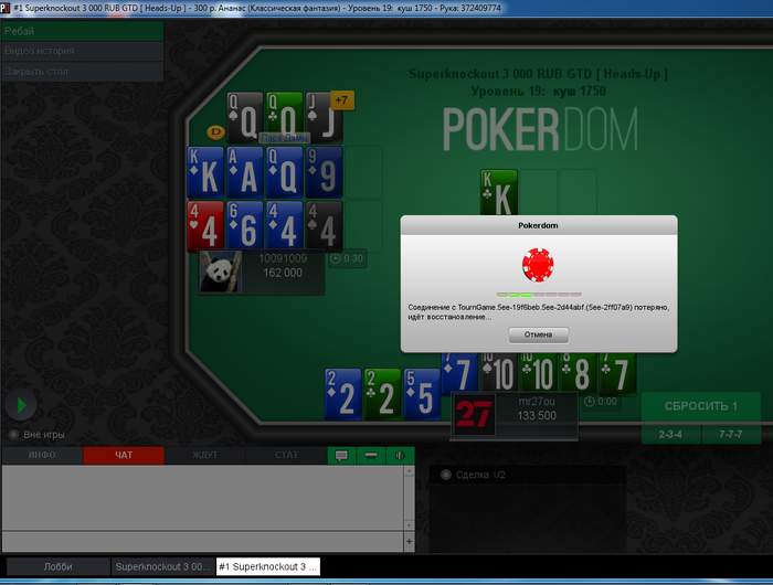 На всякий случай поясню, почему ХУ не шутаут - это отстой. Вам попадается рег, и вы с ним бьетесь достаточно долго, пока один не вылетит. Другому игроку попадается слабый игрок или, еще хуже, знакомый, с которым можно договориться об обмене долями. Он быстро выигрывает свою встречу, и вместо того, чтобы ждать соперника, и начинать играть с ним второй раунд с равными стеками, как в шутауте, начинает играть сразу, и скорее всего против стека в 2 раза меньше его собственного. У него огромное преимущество в результате против игрока, который долго бьется в своем первом матче. Дисперсия (и так огромная в ананасе) вырастает на порядок в не шутауте. А дистанцию взять негде.