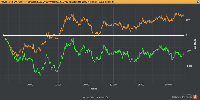 Раздачки: 1. Блин.. ну опп рег(статы по крайней мере). Префлоп колл(фолд на 3 бет там высокий, да + я люблю АК миксить). Флопца туда сюда, зачем он сыграл чек/колл, мол против..... хз против чего.