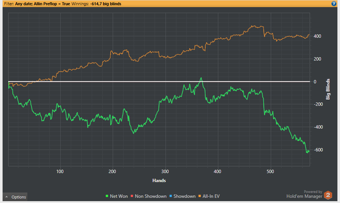 Кульминацией моей покерной сентябрьской карьеры была регистрация в хедзапе гт за 22, проигрыш его за две раздачи, а потом я непонимающими глазами посмотрел на то, что хедзапчик то был за 215 долларов. Миссклик мастер.