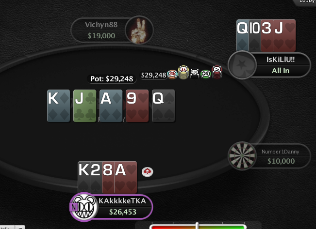 просто с 20к в 2 раздачи весь стек залил против ФД.