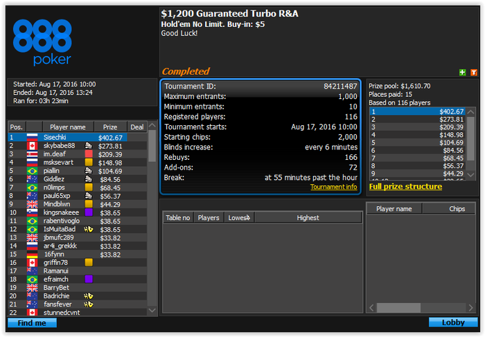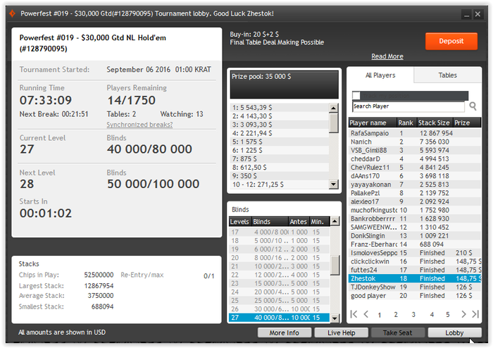 Наверное, они сфолдили раза три за всю сессию, когда у меня был не топ спектра. Ну, один раз все же ушатал. Потому и прошел на финалку. Успех. Я должен запостить это. Все-таки топкэш за последние 10 сессий