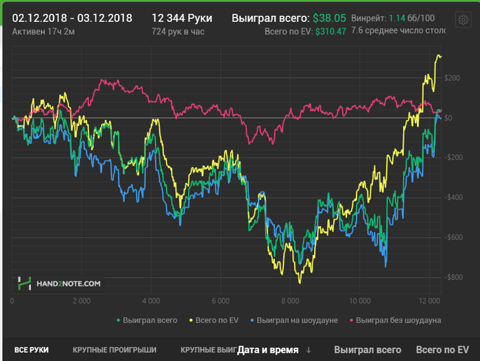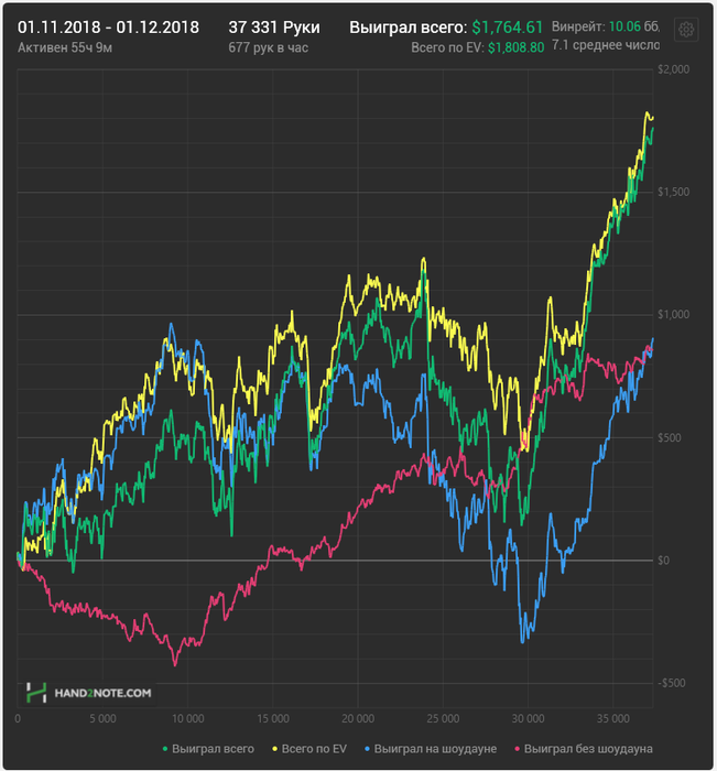 Не очень много часов отработал в ноябре , появилась какая-то апатия к покеру. Две недели вообще халявил, но зато мозги прочистились, появились новые идеи по поводу стратегии, малую часть которых, я уже успел продуктивно испытать на поляне, но их просто тьма! хочется реализовать их всех в декабре, прям аж руки чешутся и горят, посмотрим что из этого выйдет