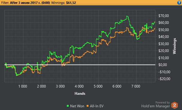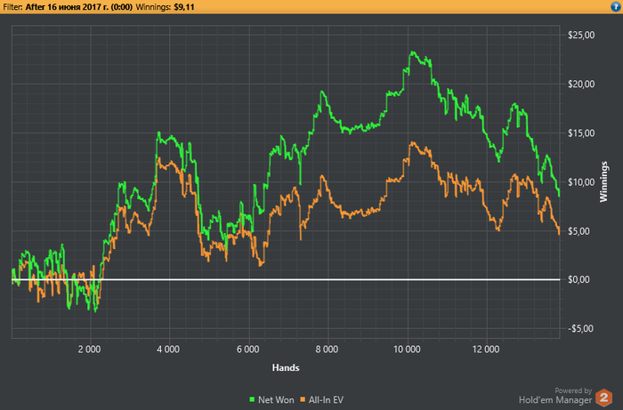 Из покерного. 2 дня назад рассчитался с бекером. По факту нл10 прошел, но постоянные кэшауты на жизнь не дают построить бр, чтобы идти выше.