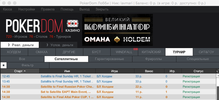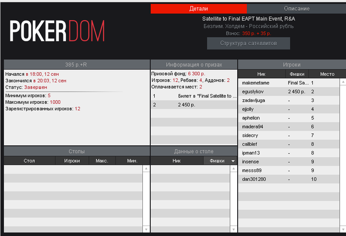 И еще раз напоминаю, что те счастливчики, которым удастся затащить сразу три сателлита, получат подарок от PokerDom 16 250 р на дорожные расходы)