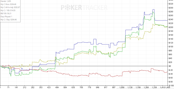 Вот тут я не уверен. Вроде 7ка хорошая карта, которая ничего не закрыла (мистические две пары ток) и можно пушить, особенно учитывая экшен на флопе. Да, все же аргументов на пуш гораздо больше. Довольно странный колл от AKT8, особенно учитывая регоподобные статы парня.